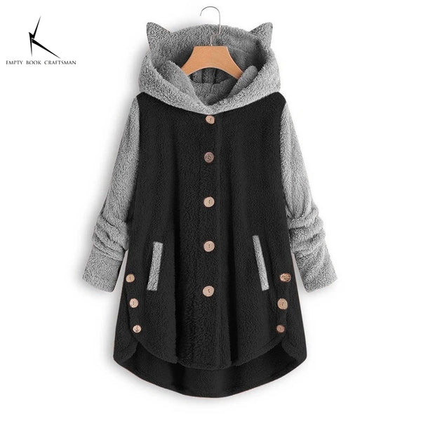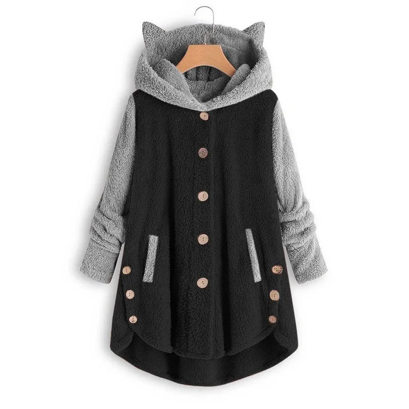 Cozy Cat Ears Teddy Coat with Pockets